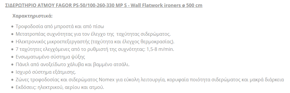 ΣΙΔΕΡΩΤΗΡΙΟ ΑΤΜΟΥ FAGOR PS-50/100-260-330 MP S